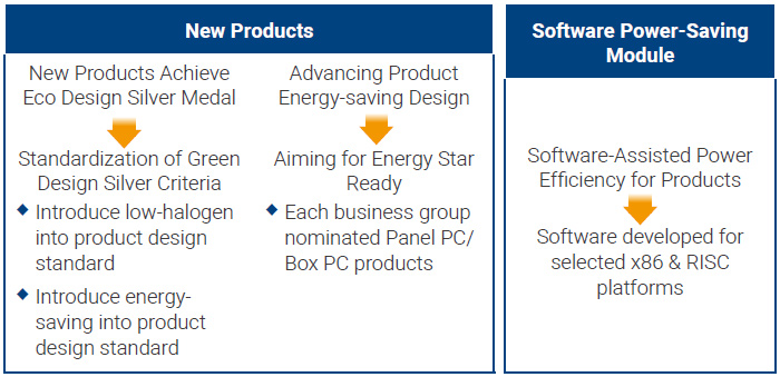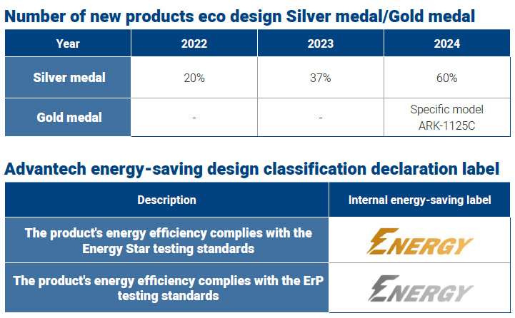 - Continue to standardize the silver medal for green eco design products into a mandatory requirement for new Advantech models, and actively design and develop Advantech gold medal models compliant with green eco design products.