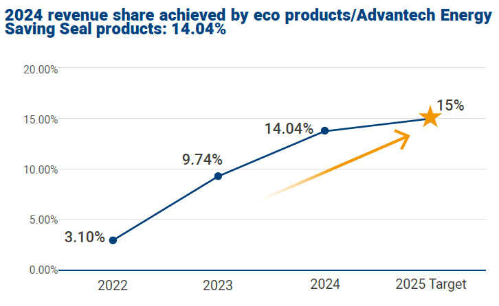 - The revenue share of mass-produced products achieving eco design product Silver medal / Advantech Energy Saving Seal for the entire year.