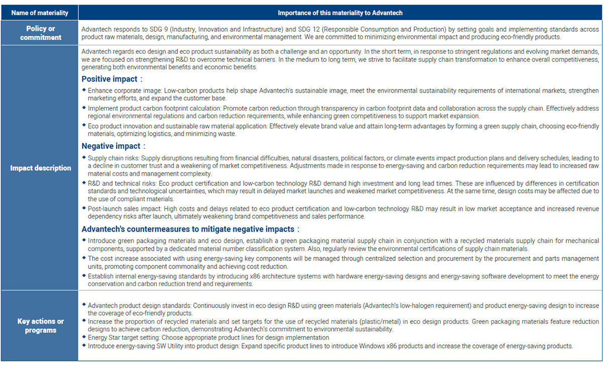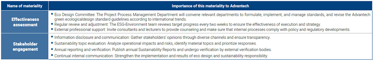In addition, Advantech has established eco product design management and standard guidelines, integrated into the product lifecycle process to guide Product Departments in creating eco-friendly and innovative products.