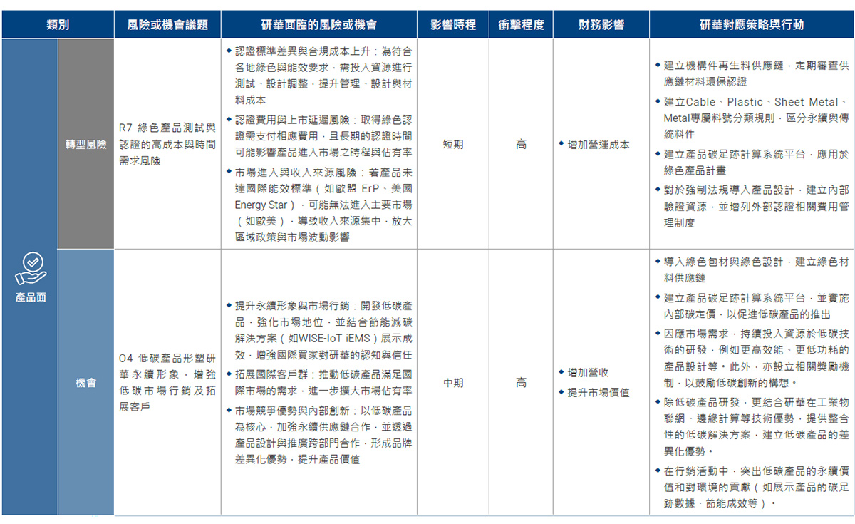 - 應用最新 IPCC 評估報告,重新調整氣候情境及新增自然風險與機會評估,對外揭露 2024 研華氣候與自然相關財務揭露報告書