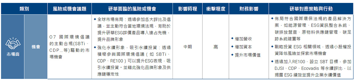 - 完成氣候相關財務揭露 (TCFD) 風險與機會評估