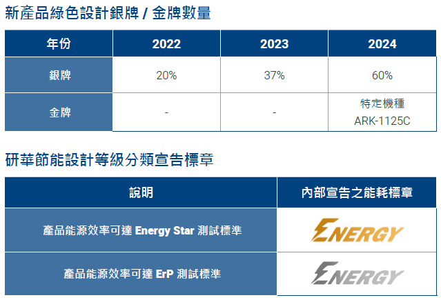 - 針對特定產品線導入 Energy Star 節能設計要求,取得內部節能金牌標章